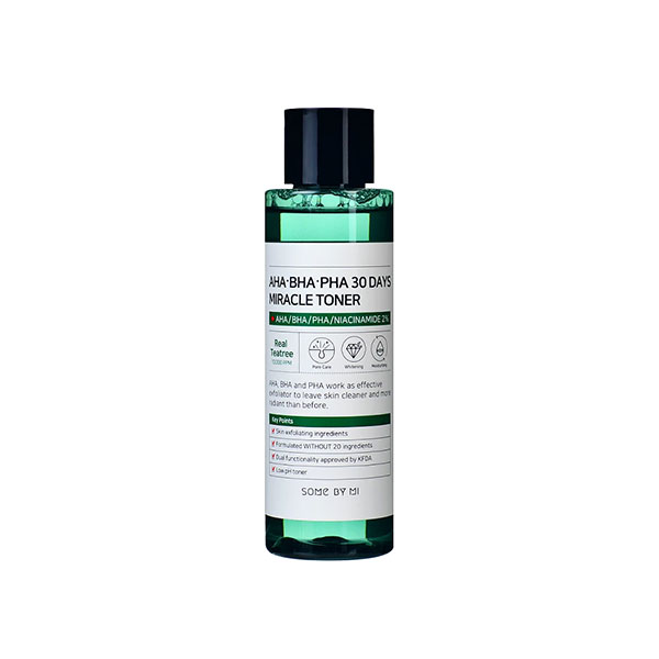 - SOME BY MI AHA, BHA, PHA 30 Days Miracle Toner contains natural tea tree extract to exfoliate for a healthier skin.