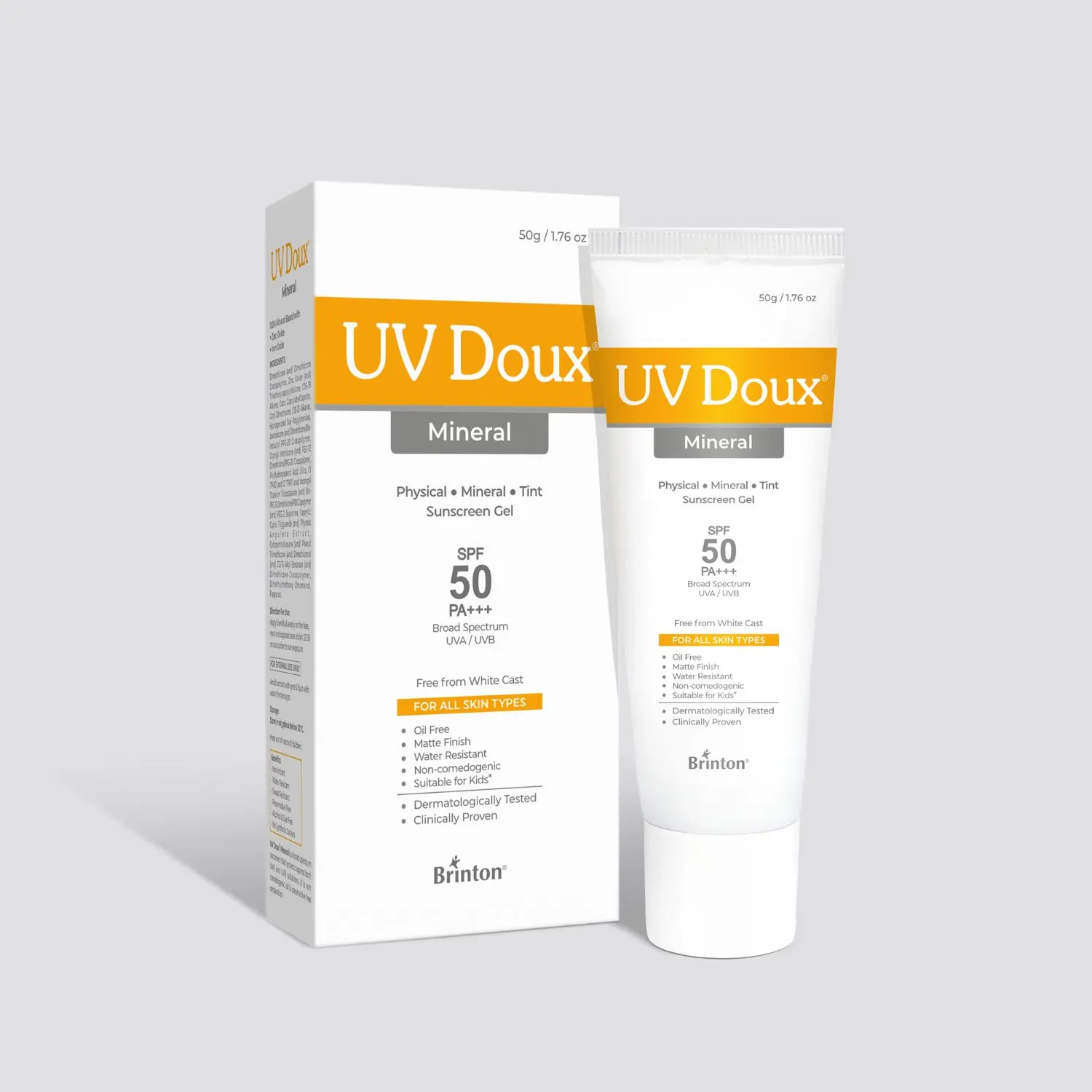 Brinton UV Doux Silicone Sunscreen Gel SPF50 PA+++ (100g) offers broad-spectrum UVA & UVB protection with a lightweight, matte finish.