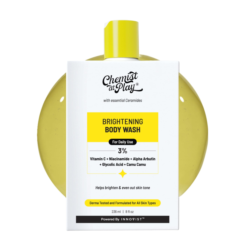 Chemist At Play Brightening Body Wash is specially formulated to gently cleanse, exfoliate, and brighten the skin. Its mild yet effective formula helps remove dirt, dead skin cells, and dullness, revealing smoother, softer, and more radiant skin.