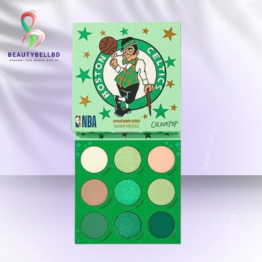 eatures super pigmented classic Celtics shades in a range of greens, beige and taupe with creamy matte and sparkling metallic finishes.Get into the green with this Boston Celtics eyeshadow palette!