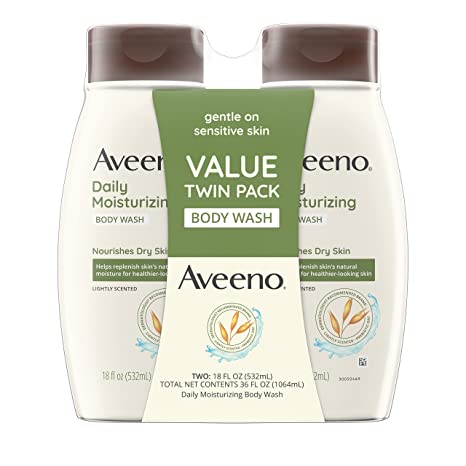 - Value pack of two, 18-fluid ounce bottle of Aveeno Daily Moisturizing Body Wash for dry and sensitive skin with Soothing Prebiotic Oat gently nourishes