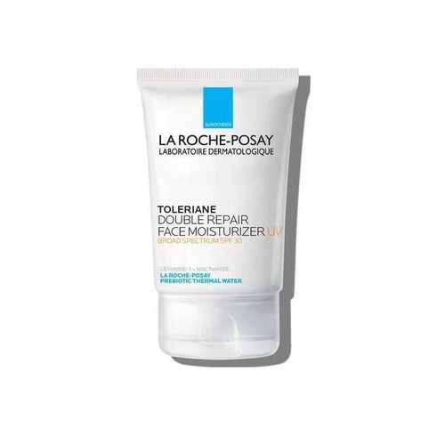 Discover Prebiotic Skincare. Toleriane Double Repair Face Moisturizer UV is formulated with a high concentration of La Roche-Posay prebiotic thermal water, ceramide-3, niacinamide, and glycerin, providing up to 48hr hydration and restoring skin’s natural protective barrier. This dermatologist-tested face moisturizer with SPF has a lightweight, refreshing texture that is easily absorbed into the skin to immediately restore the feeling of skin comfort in all skin types, including sensitive ones.