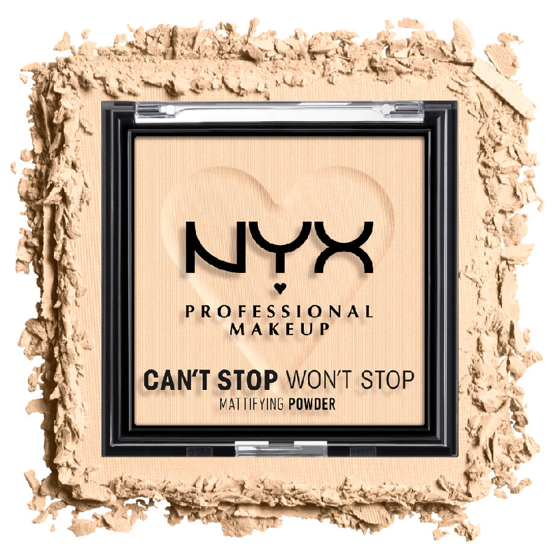 Stay matte all day with NYX Can’t Stop Won’t Stop Pressed Powder. Lightweight formula controls oil and smooths skin.