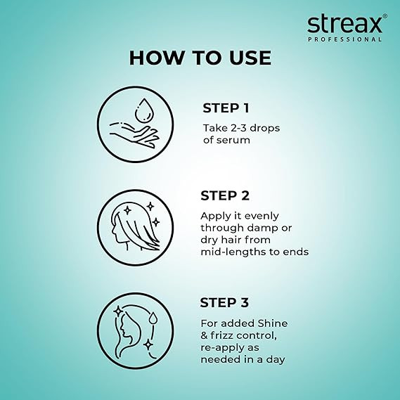 The powerful blend of ingredients in Streax Pro Hair Serum ensures superior shine and protection: