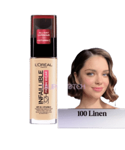 Get a flawless, long-lasting look with L'Oréal Infallible 32H Fresh Wear Foundation. This breathable, full-coverage formula feels fresh on the skin and stays put for up to 32 hours. Perfect for all-day confidence and a natural finish.